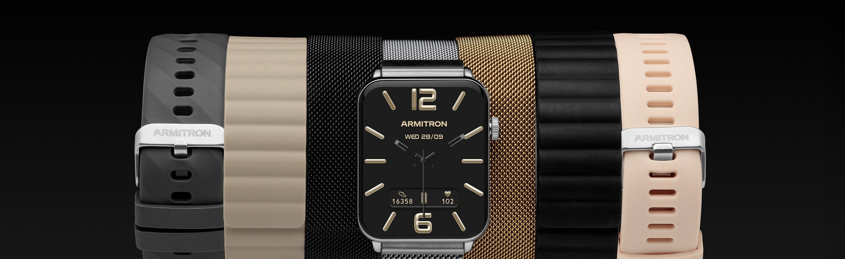 The Mesh Band is crafted from electroplated stainless steel mesh, offering a sleek, sophisticated look that subtly elevates your style. This band is designed for a secure fit and is available in black, gold, or silver. Its magnetic closure stays in place all day—no buckle is needed. Combining premium style with dependable functionality, it’s the perfect way to express your individuality while keeping your Armitron Connect Smartwatch securely on your wrist.